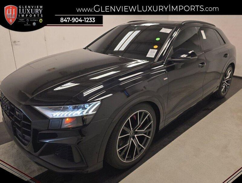 2021 Audi Q8 55 Prestige quattro quattro 3.0L V6 Turbocharged DOHC 24V LEV3-ULEV70 335hp Orca Black Metallic One Owner, Clean CARFAX, AWD, Navigation, Sunroof, Leather Seats, Heated Seats, Backup Camera, Memory Seats, 4-Wheel-Steering, 4-Zone Climate Control, Adaptive Air Suspension, Adaptive Chassis Package, Audi Active Lane Departure Warning, Audi Adaptive Cruise Assist, Audi Phone Box w/Wireless Charging, Bang & Olufsen 3D Advanced Sound System, Bang & Olufsen 3D Premium Sound System, Contour/Ambient LED Interior Lighting Package, Convenience Package, Driver & Passenger Front Seats w/Ventilation, Electric Sun Blinds for Rear Side Windows, Executive Package, HD Matrix-Design LED Headlights, Head-Up Display, Headlight Washers, Heated 3-Spoke Multifunction Steering Wheel, Heated Auto-Dimming Power Folding Exterior Mirrors, Heated Rear Seats, Illuminated Door Sills, Intersection Assist, LED DRL & Taillights, Navigation System, Navigation system: Audi MMI Navigation plus with Touch Response, Power moonroof, Power Soft-Closing Doors, Prestige Package, S line Fender Badges, S line Front & Rear Bumpers, S line Illuminated Door Sills, S line Side Sills, S line Style Package, S-Line Exterior Package, Top View Camera System, Traffic Sign Recognition, Upper Dashboard in Leather w/Contrast Stitching, Wheels: 22 Audi Sport 5-V-Spoke Star Design. Recent Arrival!Our goal is to make your luxury and exotic car buying and owning experience unlike any other major purchase. With an unmatched attention to detail, truly impressive product lineup, and unique access to OEM parts. We are equipped to provide the ultimate in customer service every time you visit. In fact don?t think of us as a dealership at all. We?re your personal automotive concierge that offers the driving experience that your lifestyle demands. At our dealership, you?ll find a solid selection. If you have any questions for us, you can always get in touch at (847) 904-1233.