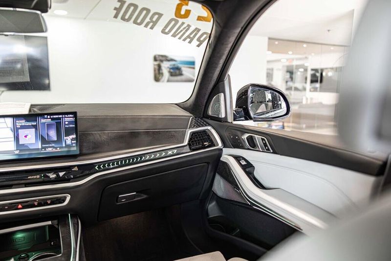 2023 BMW X7 xDrive40i AWD 3.0L I6 DOHC 24V Carbon Black Metallic AWD, Navigation, Sunroof, Leather Seats, Heated Seats, Backup Camera, Memory Seats, Cooled Seats, Premium Sound System, Premium Audio, Multi-Zone Climate Control, Bluetooth, Hands-Free, USB Port, Portable Audio Connection, Apple CarPlay/Android Auto, Steering Wheel Controls, 5-Zone Automatic Climate Control, Aerodynamic Kit, Anthracite Alcantara Headliner, Climate Comfort Package, Connected Package Pro, Drive Recorder, Executive Package (DISC), Extended Shadowline Trim, Front & Rear Heated Seats, Front Massaging Seats, Front Ventilated Seats, Gesture Control, Glass Controls, harman/kardon Surround Sound System, Heated & Cooled Cup Holders, Illuminated Kidney Grille, M Sport Brakes w/Black Calipers, M Sport Exhaust System, M Sport Package, M Sport Package (337), M Sport Package Pro, M Sport Professional Package, M Steering Wheel, Navigation System, Navigation system: BMW Maps Navigation, Panoramic Sky Lounge LED Roof, Parking Assistance Package, Parking Assistant Professional, Rear Electric Side Window Shades, Shadowline Exterior Trim, Soft-Close Automatic Doors, Surround View w/3D View, Wheels: 21 x 9.5 Double-Spoke Bi-Color Orbit Grey, Without Lines Designation Outside. Recent Arrival! Odometer is 18583 miles below market average!Our goal is to make your luxury and exotic car buying and owning experience unlike any other major purchase. With an unmatched attention to detail, truly impressive product lineup, and unique access to OEM parts. We are equipped to provide the ultimate in customer service every time you visit. In fact don?t think of us as a dealership at all. We?re your personal automotive concierge that offers the driving experience that your lifestyle demands. At our dealership, you?ll find a solid selection. If you have any questions for us, you can always get in touch at (847) 904-1233.